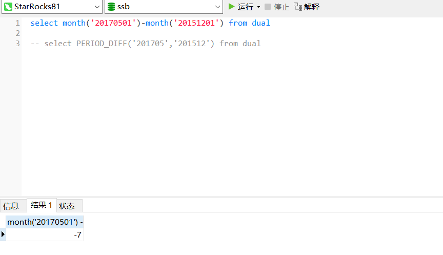 可以通过这种方式进行计算 select month(20010601)-month(20010201);