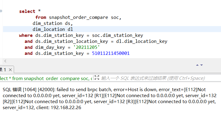 麻烦您发下 explain的结果。 再看下BE上的warning 日志 有没有有用的信息。