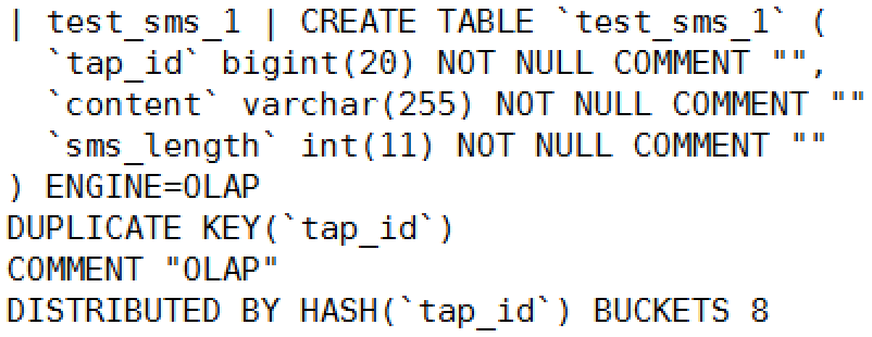 DISTRIBUTED BY HASH(tap_id) BUCKETS 8
