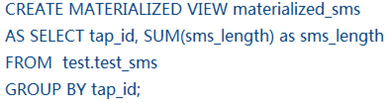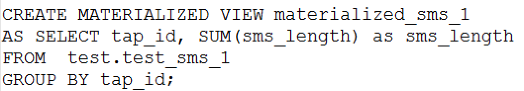 AS SELECT tap_id,SUM(sms_length) as sms_length