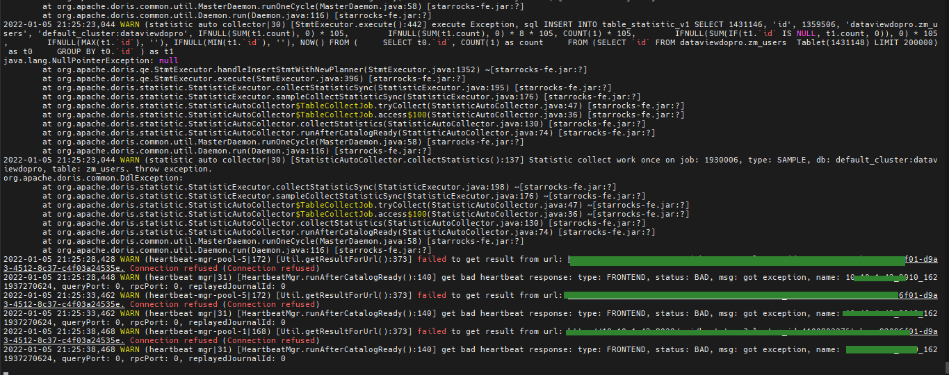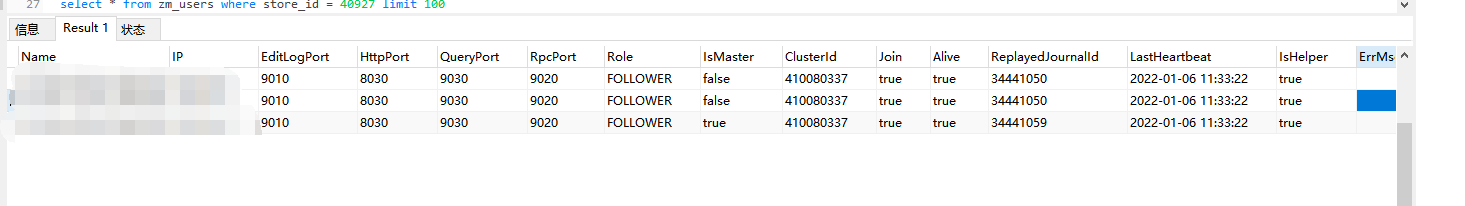 image 横线标注部分的值与show backends结果中version的后缀一致,即fe和be的版本一致。报错通过show frontends;查看下fe的状态