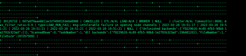 【详述】实时写StarRocks,Broker Load 报错 intoleralbe failure in opening node channels