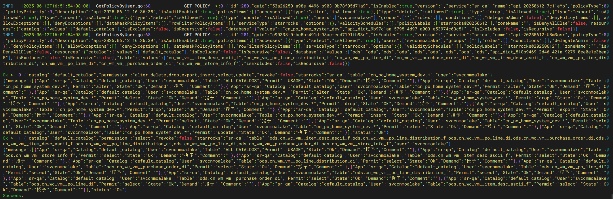 此时sr-qa集群已经从刚才的native转变成ranger接管,并且查看账号权限信息时,也会出现相关policy id、policy name等信息。