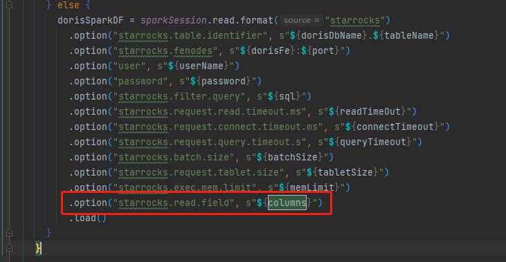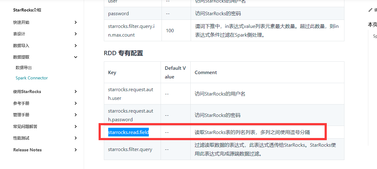 【详述】spark-connect 获取字段异常 【背景】使用spark-connect 的starrocks.read.field进行固定字段的获取,但是返回全部字段 【业务影响】spark-connect无法获取固定字段 【StarRocks版本】例如:1.19.1 【集群规模】例如:3fe(1 follower+2observer)+6be(fe与be混部) 【机器信息】CPU虚拟核/内存/网卡,例如:48C/256G/万兆 【附件】
