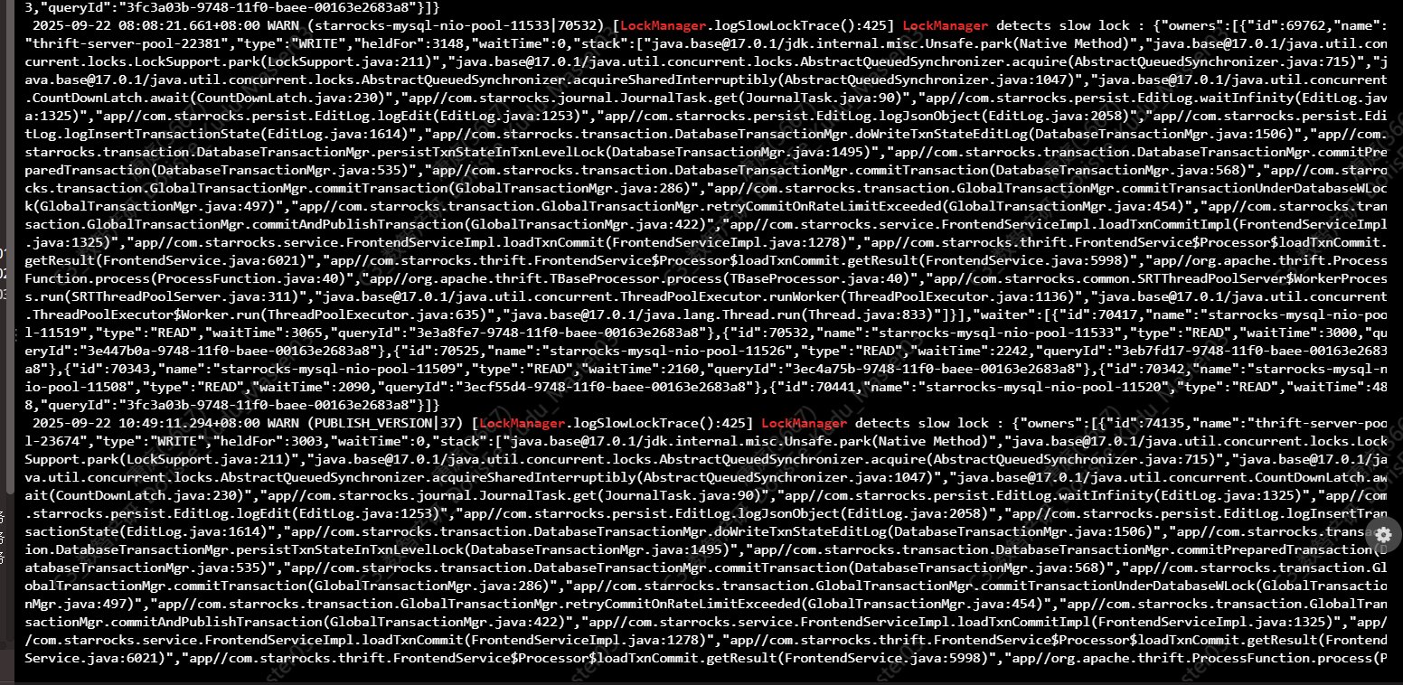 出问题的时候有时候有LockManager.logSlowLockTrace,有时候也没有,不知道跟这个是否有关系。