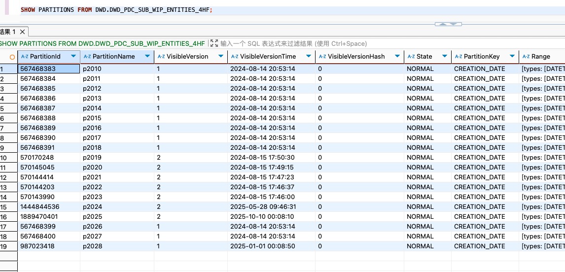 com.starrocks.sql.analyzer.SemanticException: Getting analyzing error. Detail message: Unknown partition ‘p2025_1889470400’ in table ‘DWD_PDC_SUB_WIP_ENTITIES_4HF’.