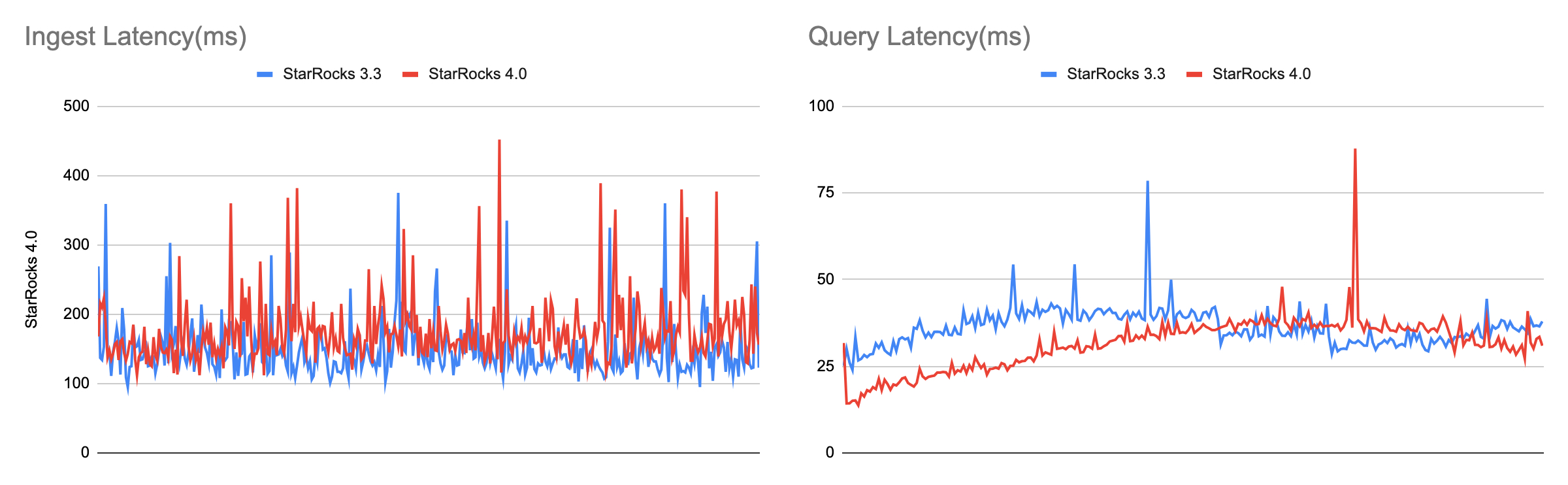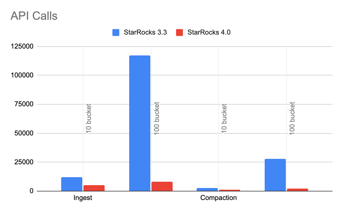 得益于这些改进,StarRocks 4.0 在实时导入与查询场景中表现更为出色。 相比 3.3 版本,API 调用减少 70%–90%,导入与查询延迟几乎无变化,部分场景甚至更快。