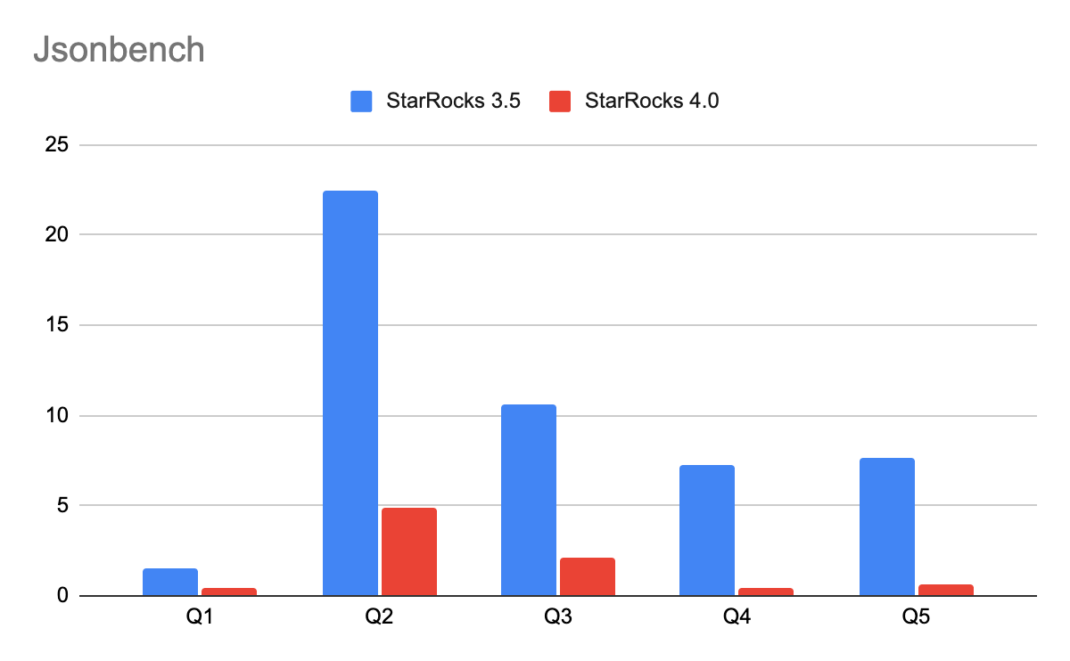 StarRocks 4.0 更进一步:正式将 JSON 升级为一等数据类型 ,并在执行层面加入了一系列深度优化,如 索引、全局字典、延迟物化及谓词下推。 让 JSON 可以享受和结构化列同样的加速手段:相比 3.5 版本, StarRocks 4.0 在 JSON 查询上的性能提升 3–15 倍。