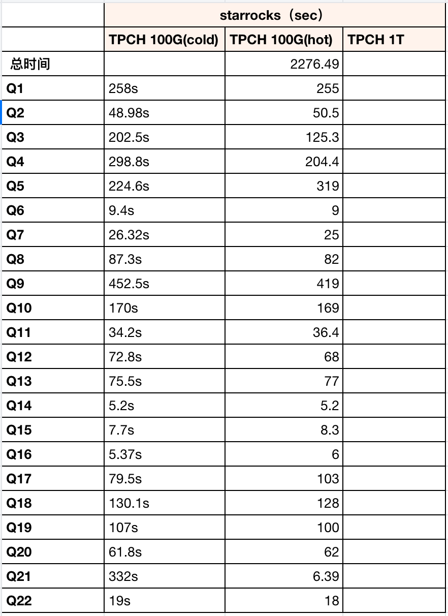 我在做数据库选型,进行TPC-H 100G AP性能测试时发现starRocks 性能非常差,我不清楚是否是配置的问题,还是 starRocks 本来就不擅长此类的查询。