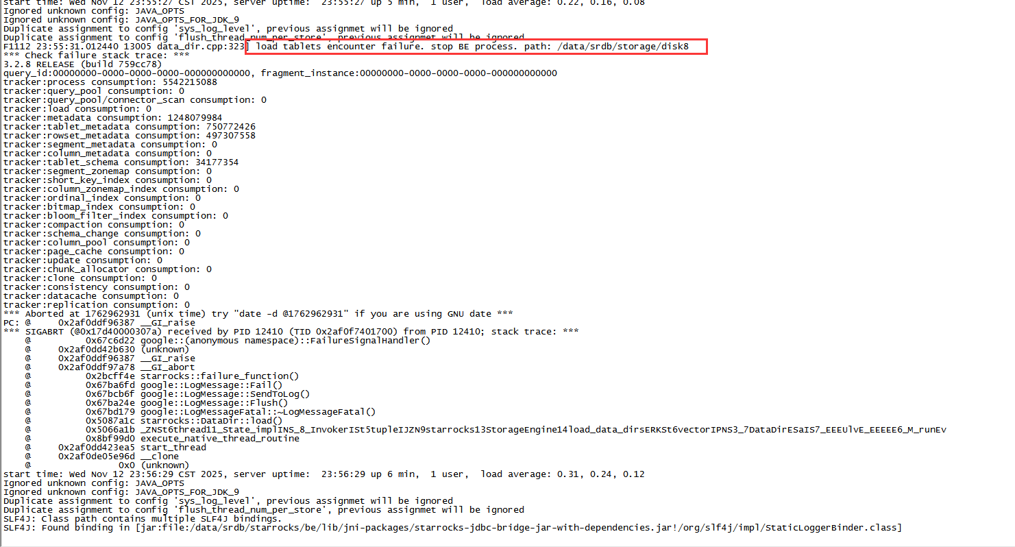 将 /data/srdb/storage/disk8 从 be.conf 去掉: 这是一个正确的应急操作。如果 BE 上的某个磁盘(disk8)出现问题,导致其上的 Tablet 无法访问(如 versioncount=-1),将该磁盘移除可以避免 BE 尝试使用该磁盘上的损坏副本。