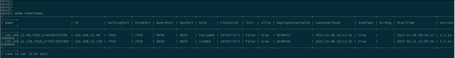 最初只是部署了1 fe 3 be,迁移需要新增了1fe 3be,总共2fe 6be (2 follower)+6be(fe与be混部)