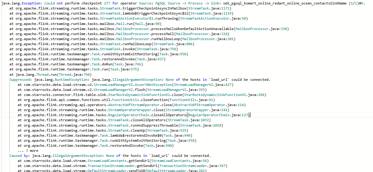 flink同步数据报None of the hosts in `load_url` could be connected