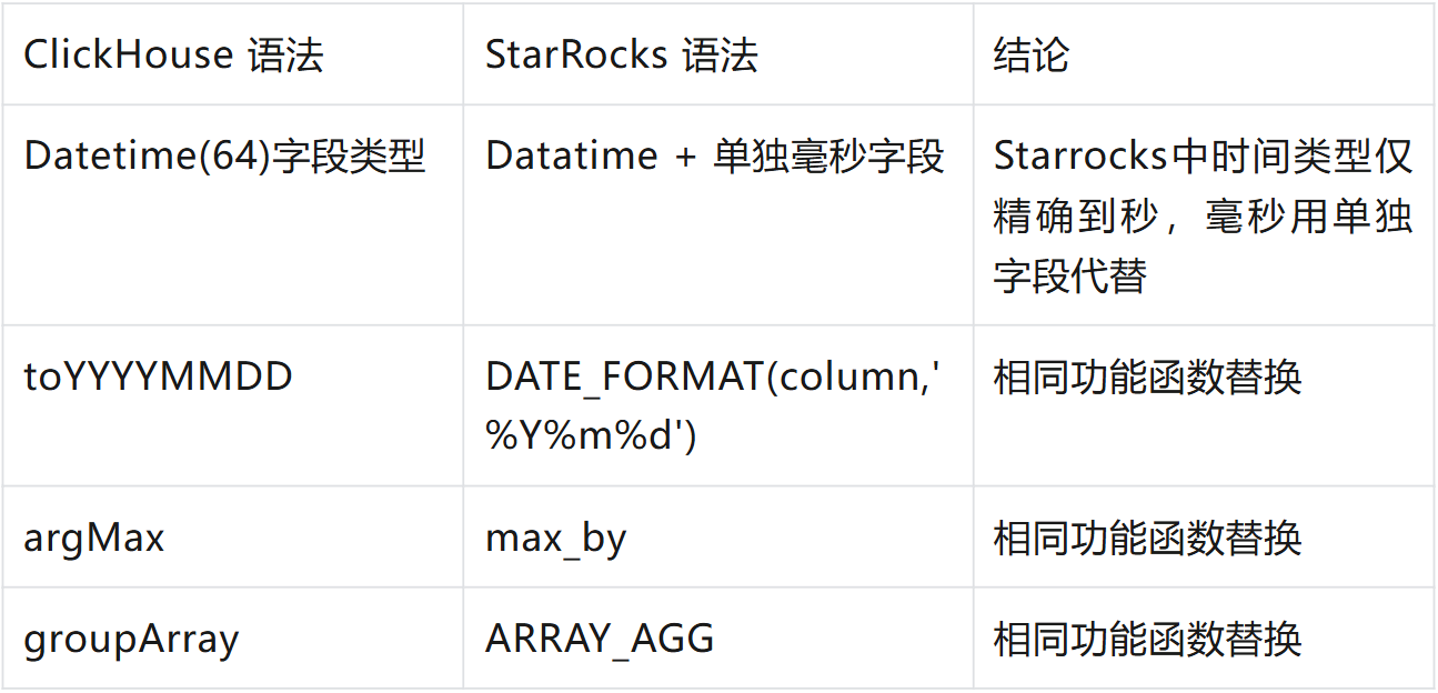 团队在社区提供的 SQLTransformer工具基础上进行了扩展,实现 ClickHouse 与 StarRocks 语法的深度兼容,使数据分析人员能够直接复用原有脚本与查询习惯,无需额外改造。