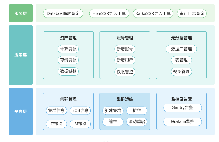 - 集群服务模块: 集成 StarRocks 运维与业务支撑所需各类工具,打造 “一站式服务平台”,大幅降低跨系统操作成本,核心功能包含:
