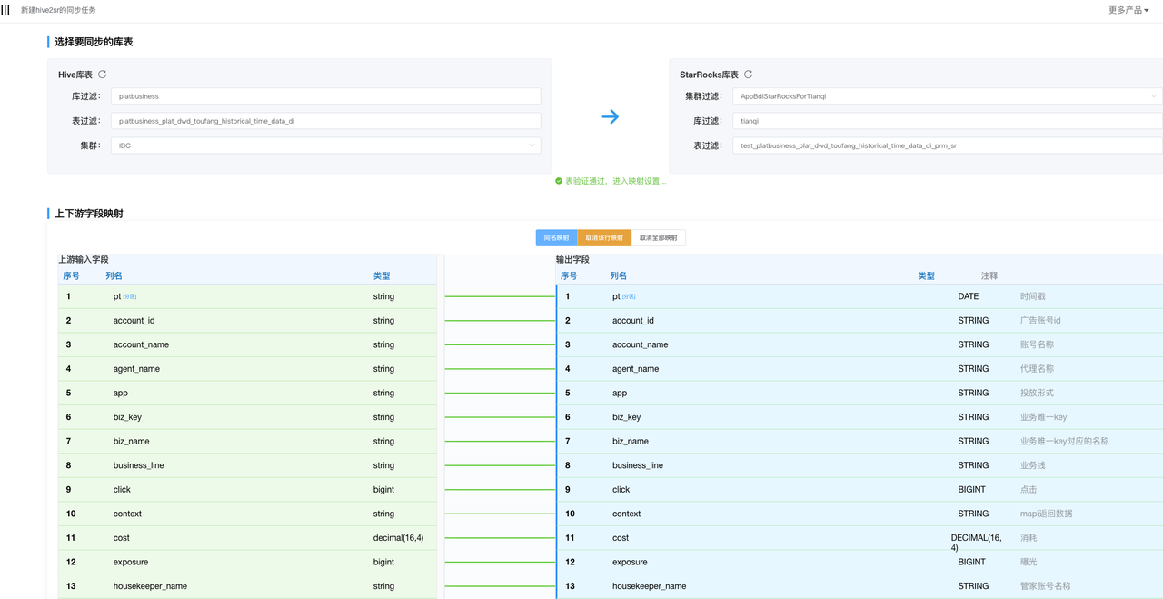 - 增量数据同步 :通过 Flink 任务同步至 StarRocks,保障迁移过程中数据不丢失、延迟低,实现业务 “无感迁移”。