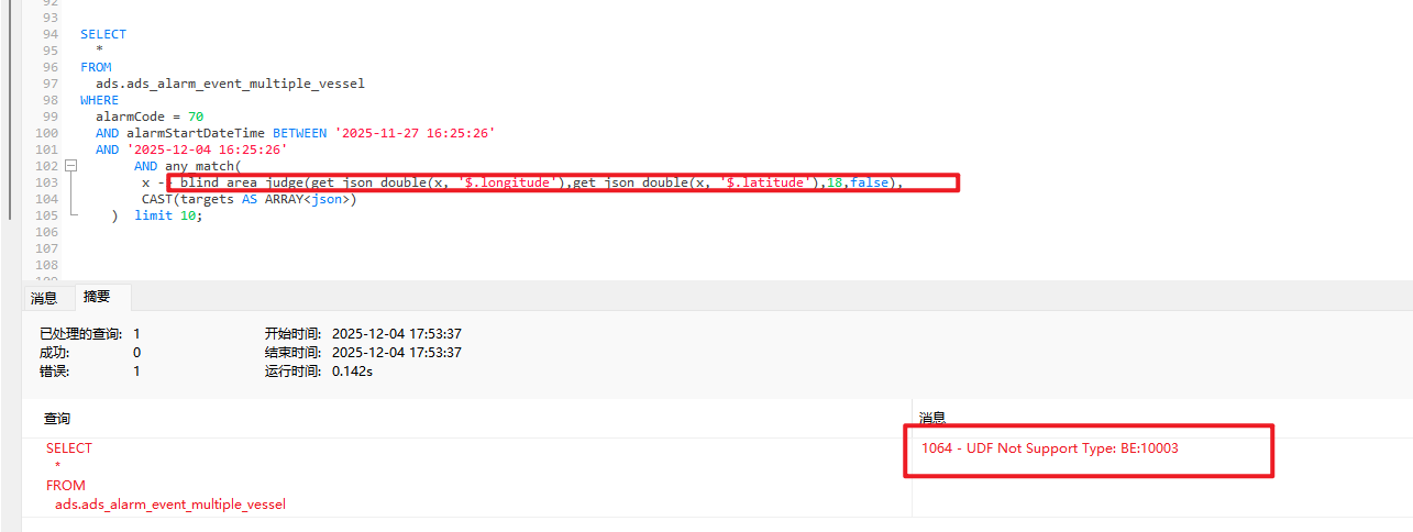 这里使用了any_match在箭头函数中嵌套使用的blind_area_judge这个udf函数,这个udf函数返回时boolean类型的: