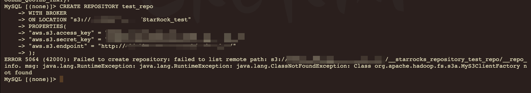 ); 桶和域名都确定正确,但是报错Failed to create repository: failed to list remote path: s3://xxxx/test/__starrocks_repository_test_repo/__repo_info.