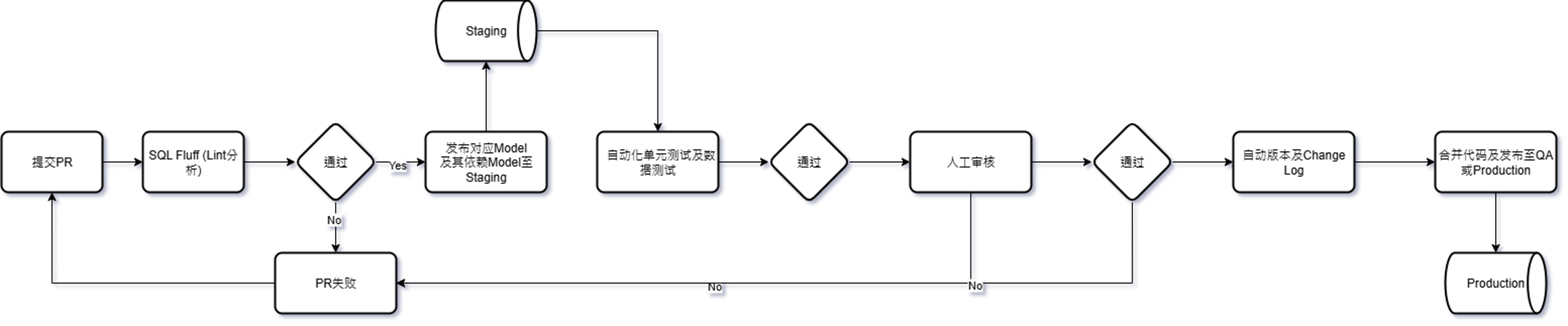 在 DataOps 体系中,CI/CD 流程通常从一次 Pull Request(PR)开始。每当有变更提交时,都会先通过 PR 发起代码合入请求,随后进入一套标准化的检查与发布链路。