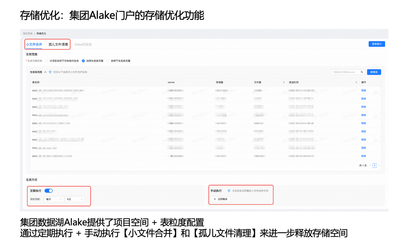 为此,集团数据湖门户支持按“项目空间 + 表”粒度进行配置。我们将目标表纳入治理范围后,可通过定期执行或手动触发的方式开展: