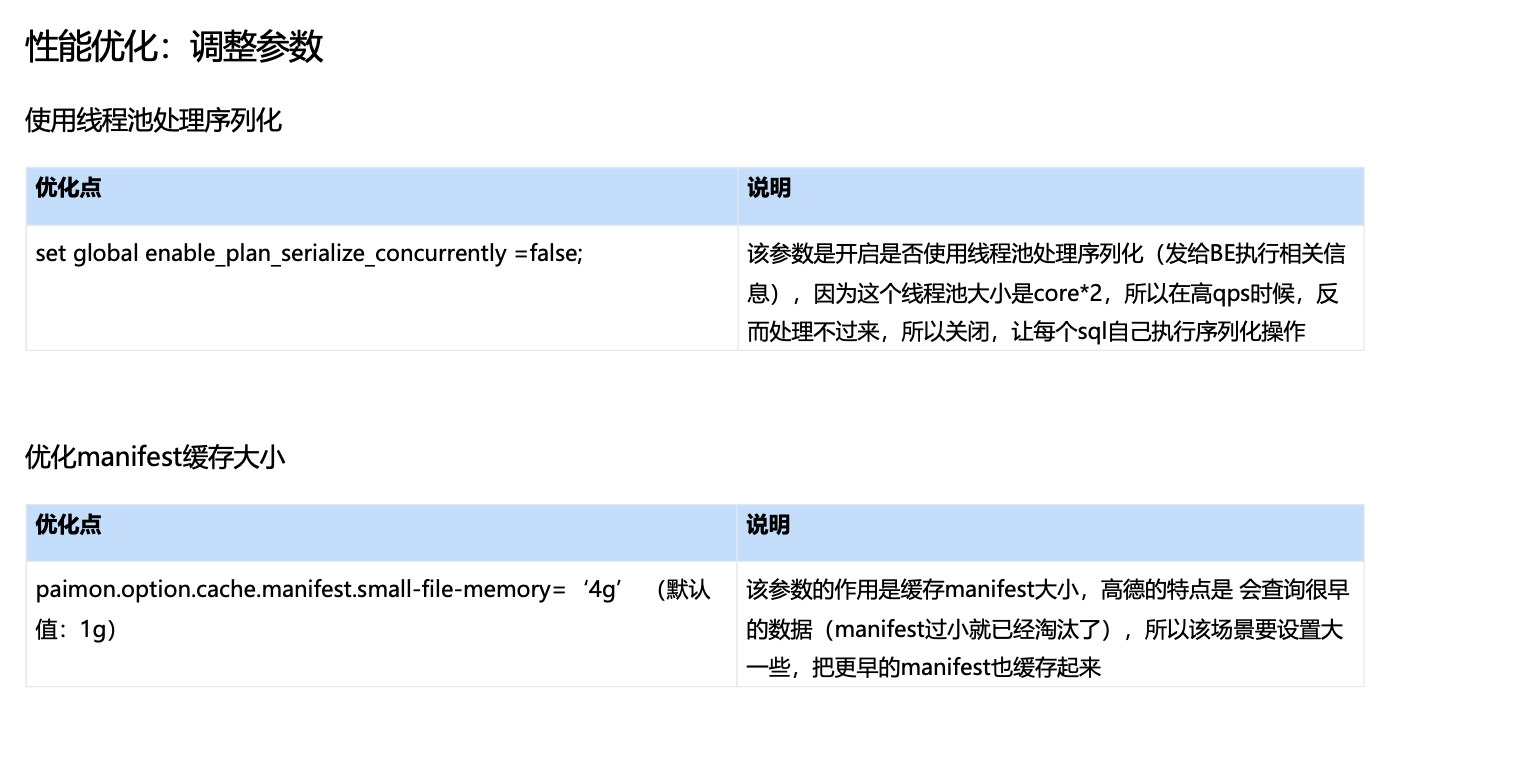 我们也针对 Paimon 表做过一系列参数调优,以进一步优化点查场景下的读取效率与稳定性。
