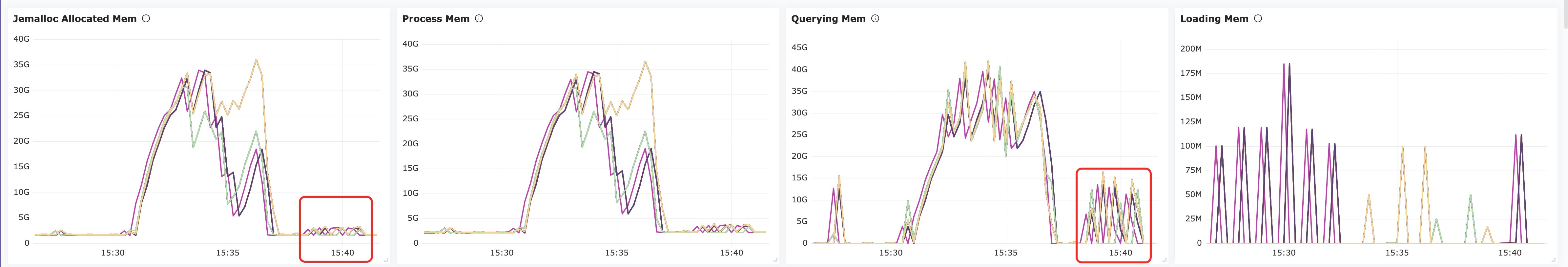比较奇怪的是监控上显示query MEM 大于 Jemalloc Allocated Mem