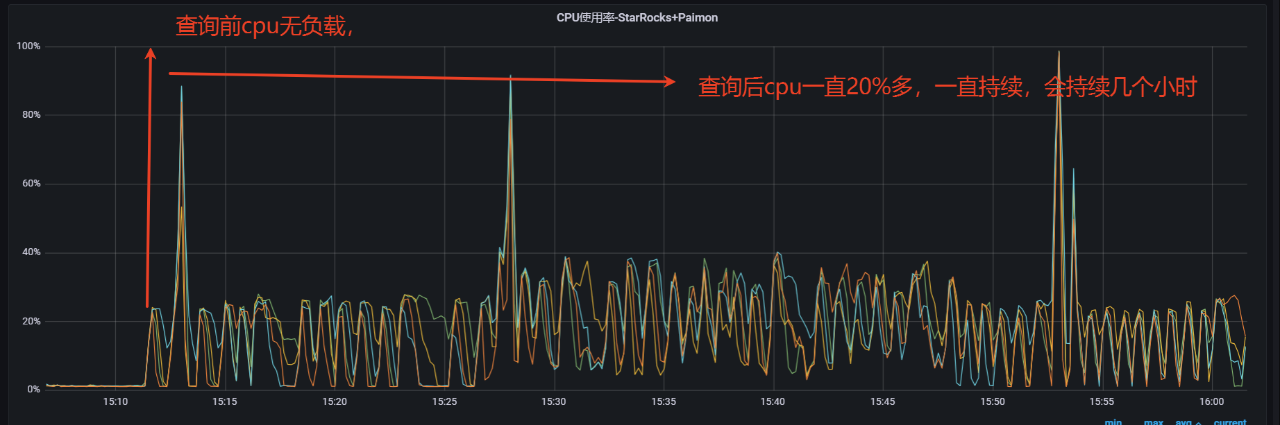 用StarRocks4.01.版本查询了一个Paimon表,执行时间2s,执行结束后,cpu一直处于20%左右,会持续很长时间,发现BE日志一直有大量的I20260421 15:50:53.081114 22854423172672 jni_scanner.cpp:132] Initialize a scanner with parameters: nested_fields->, required_fields->day,operatorid, time_zone->Asia/Shanghai,