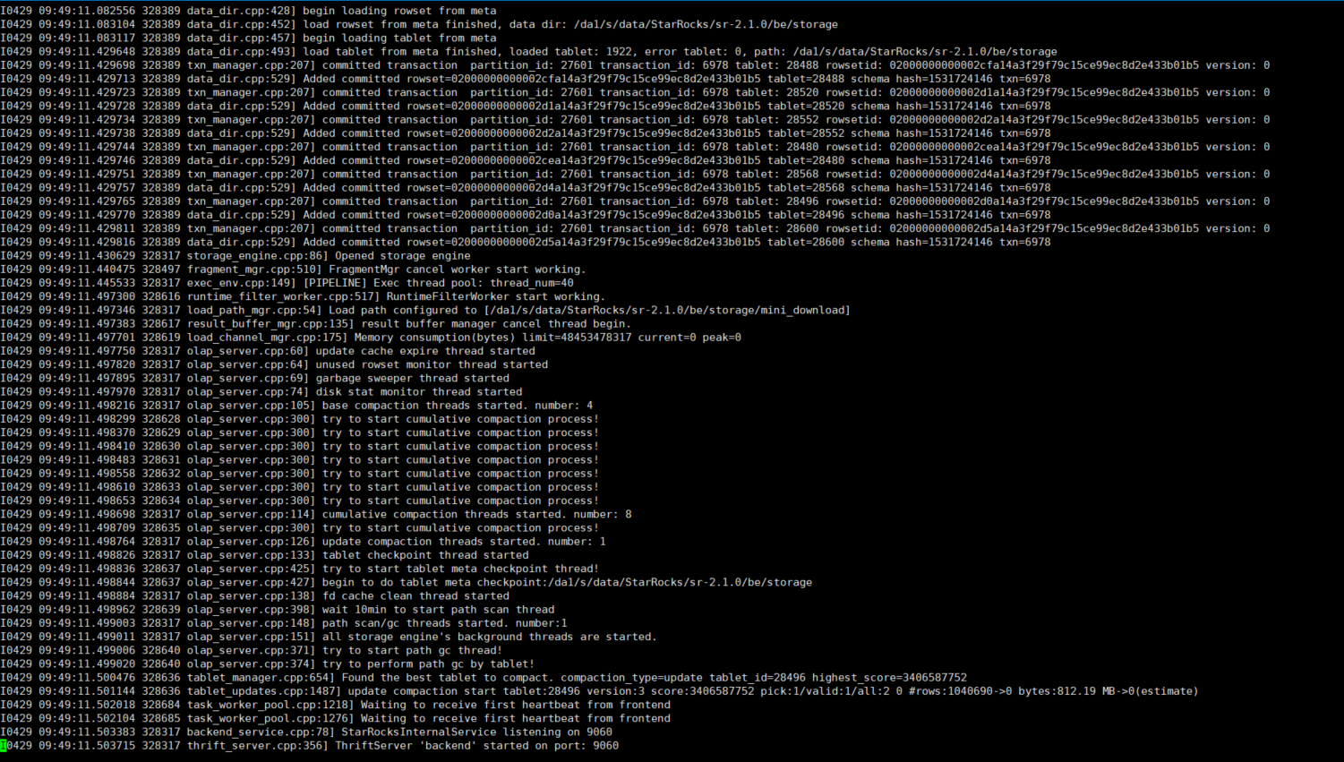 【详述】使用的是主键模型broker load导入数据,内存消耗大be挂了。但是重启的时候一重启就挂了。