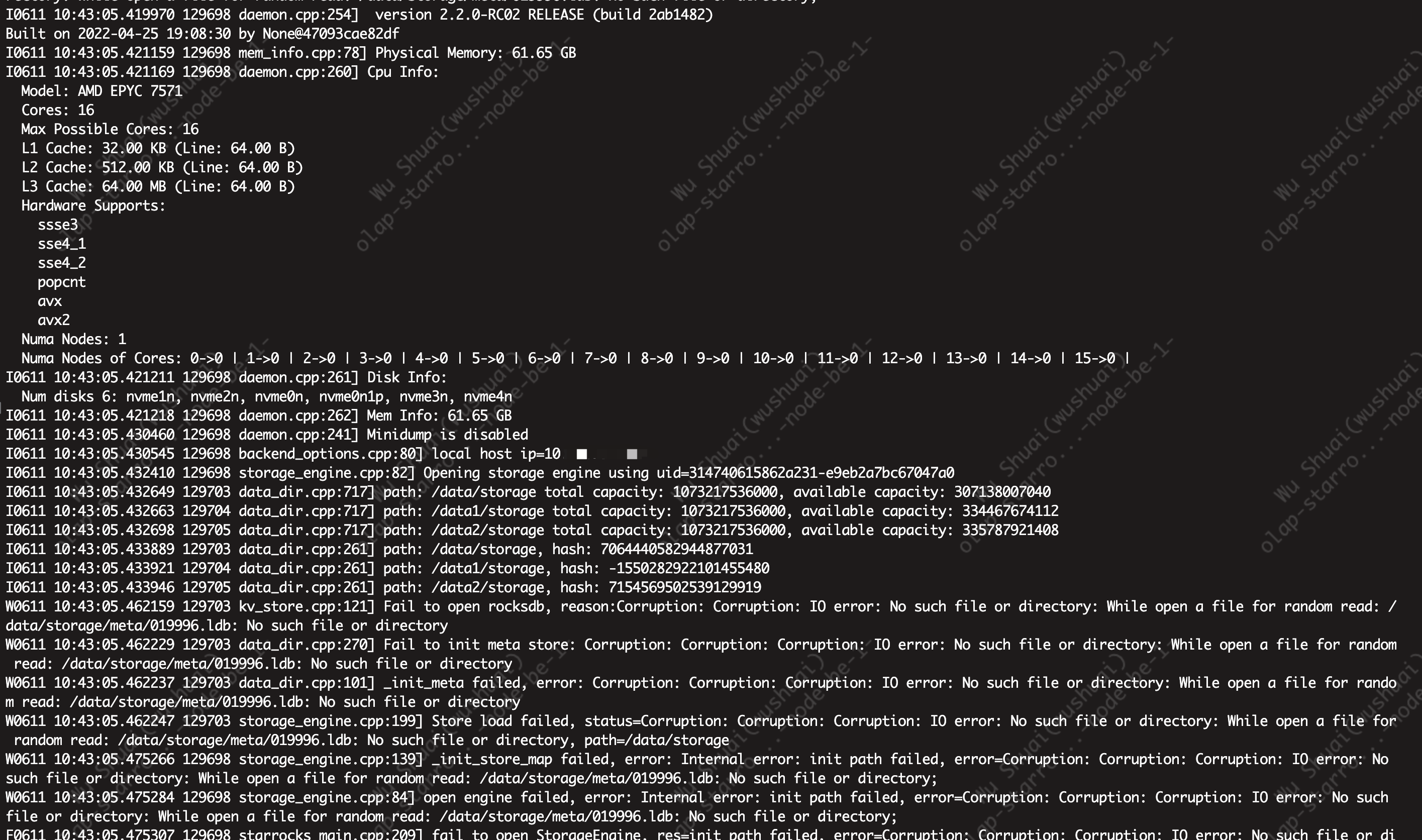 starrocks be启动失败,报错丢失 .ldb文件