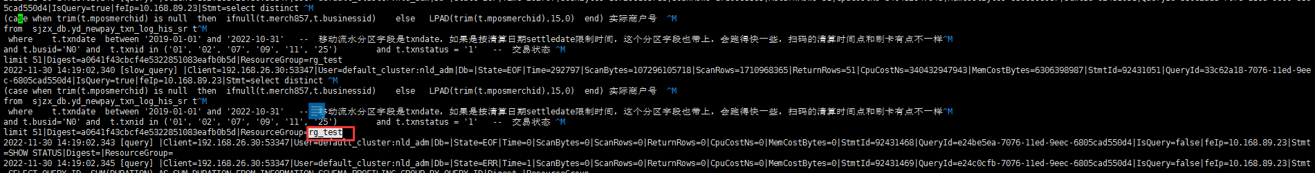 可能通过审计日志fe.audit.log查看sql使用了哪个资源组,如下图