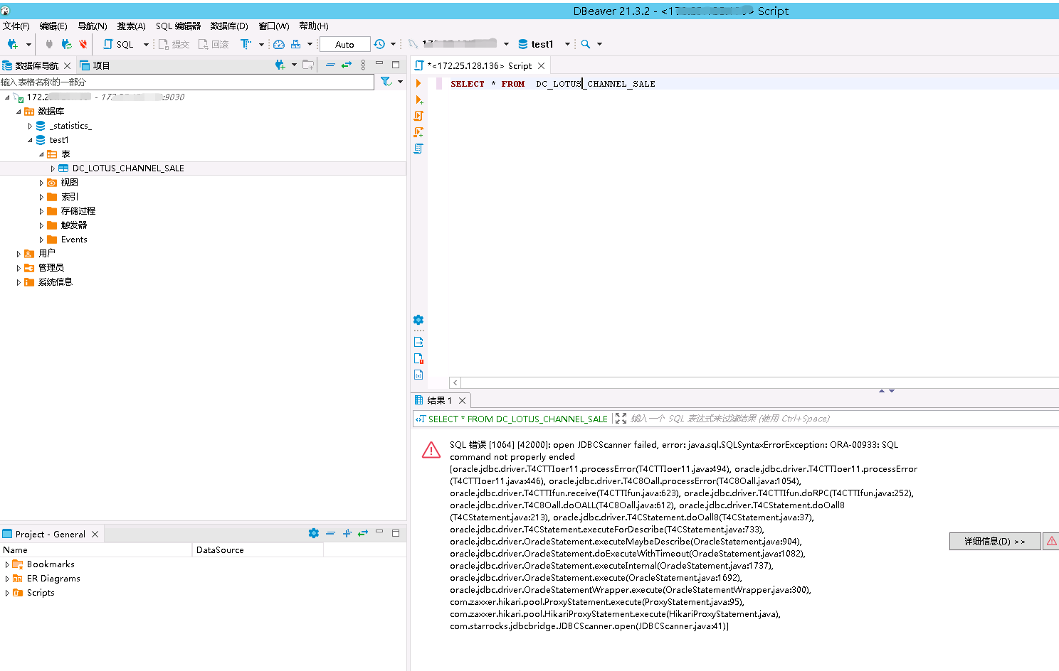dbeaver貌似会自动加个limit,oracle那边不支持limit。可以用mysqlclient试试?