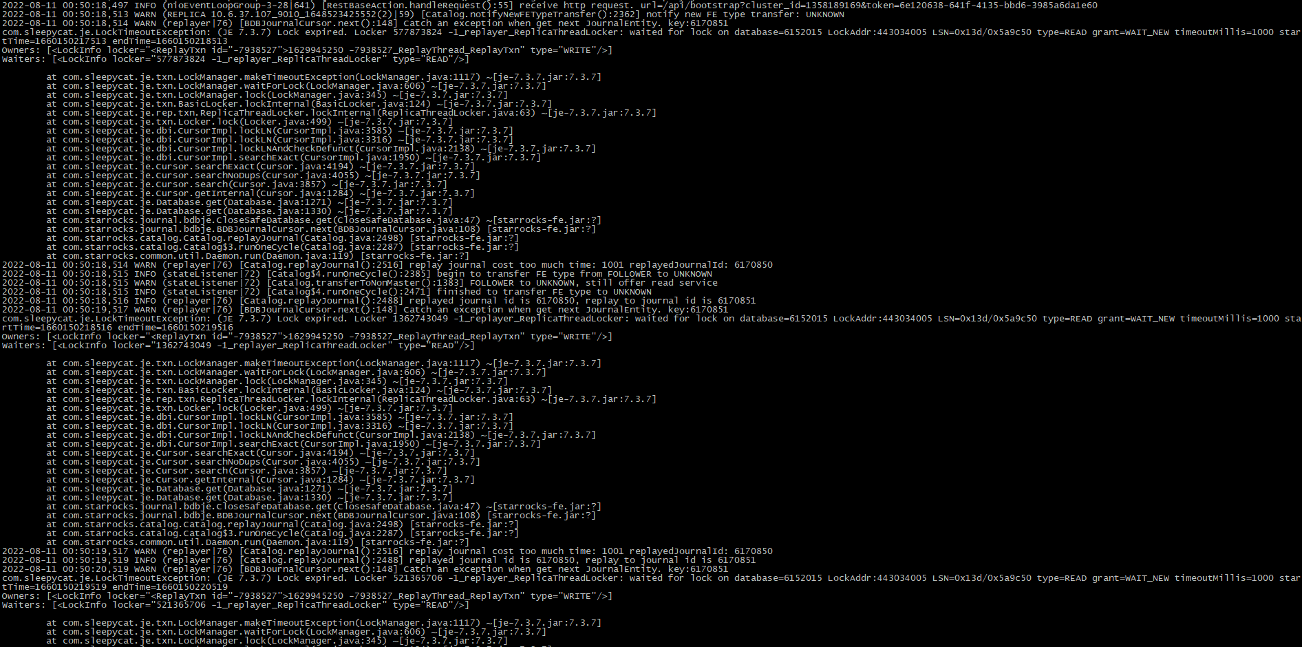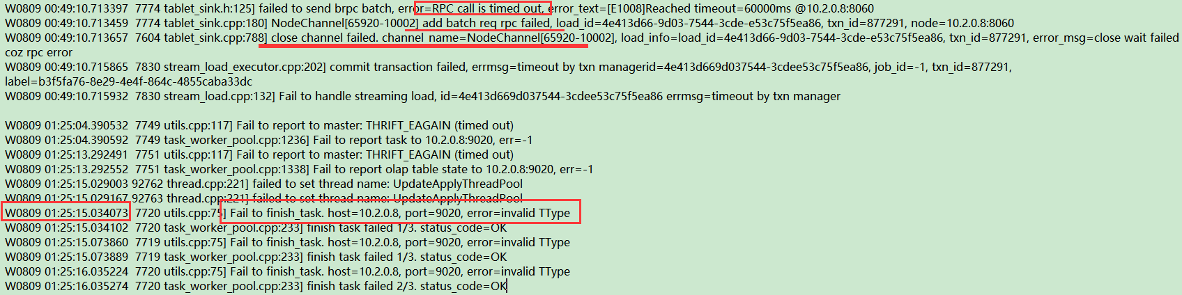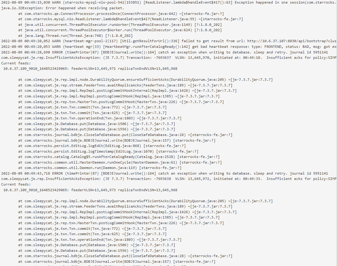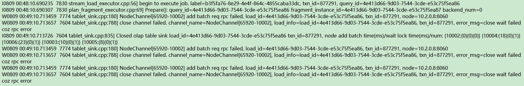 fe状态正常,整天都在跑stream load,只是晚间报这个错误