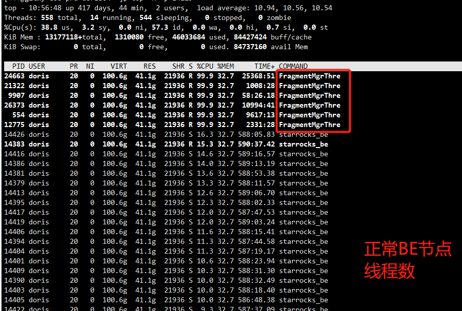【详述】starrocks 单个BE节点CPU负载很高,其它BE 一切正常