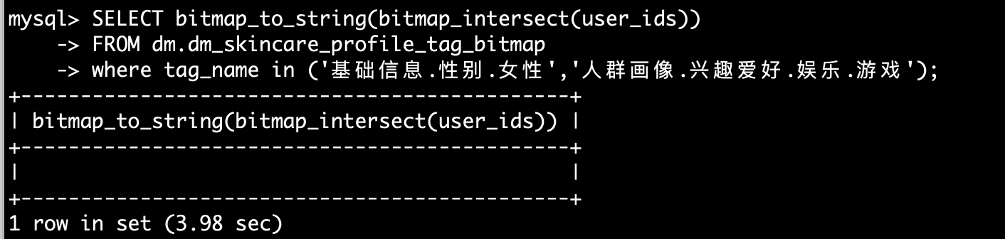 【详述】使用bitmap存储用户画像的标签数据,在使用相关函数时不能正确返回结果。