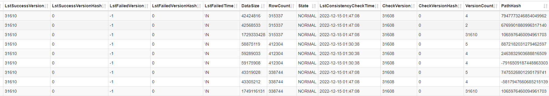 看下该表下的所有的分区,是不是存储数据规模不一样,您也帮忙确认下VisibleVersion是否会有变化