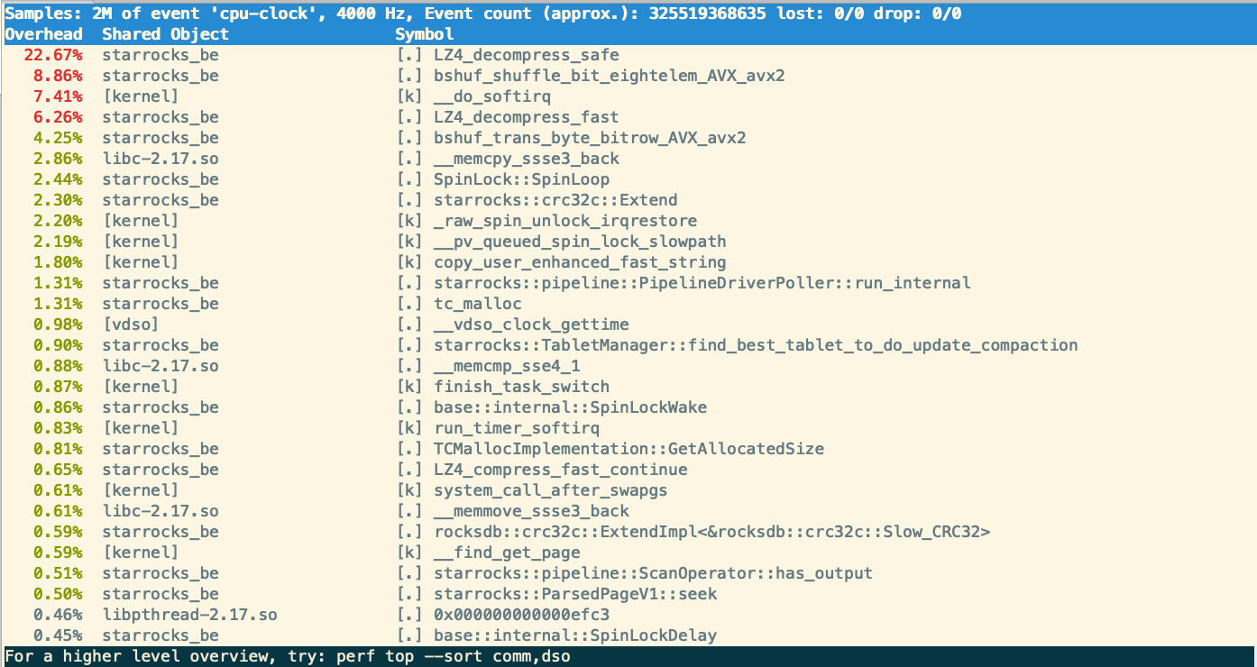在BE的机器上执行 sudo perf top