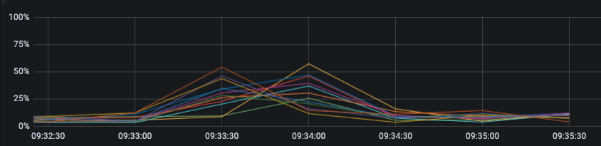 CPU利用率补充一下,是负载最高的节点在60%左右,其他的在50%以下