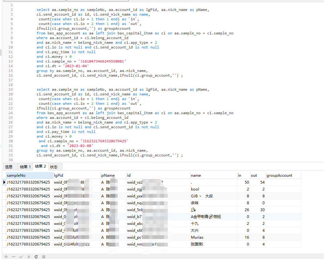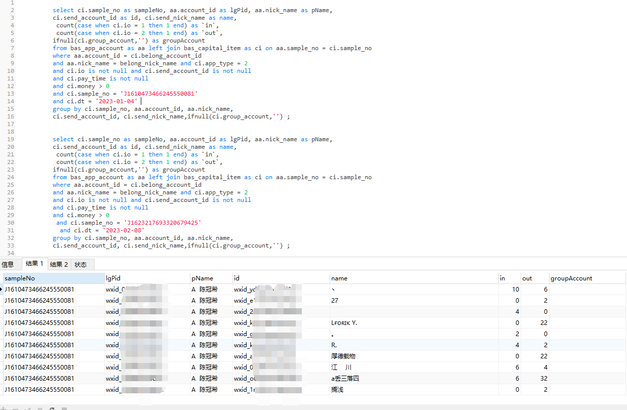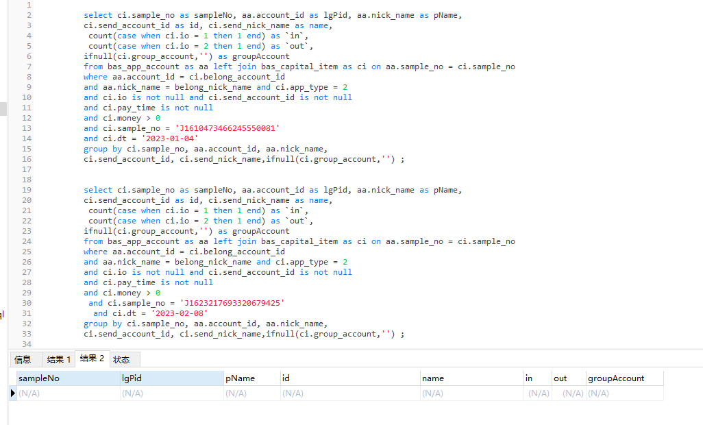 使用select ci.sample_no查询,图二无数据