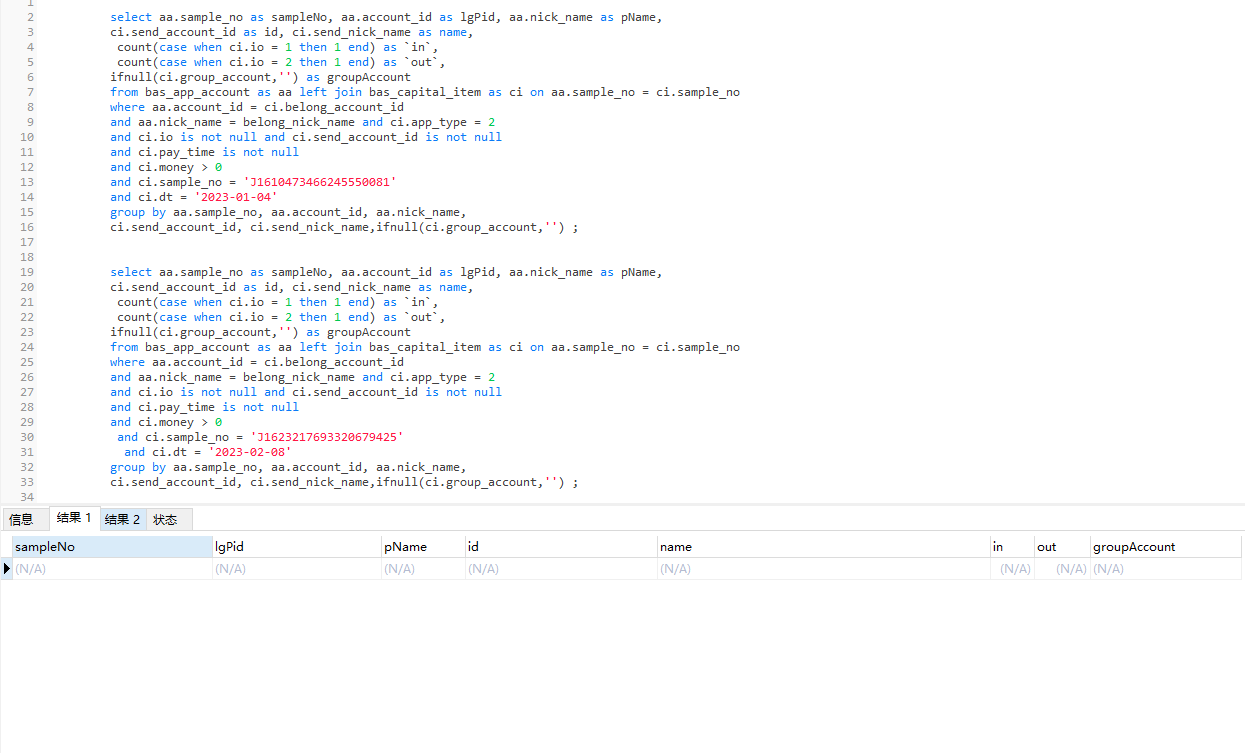 使用select aa.sample_no查询,图一无数据