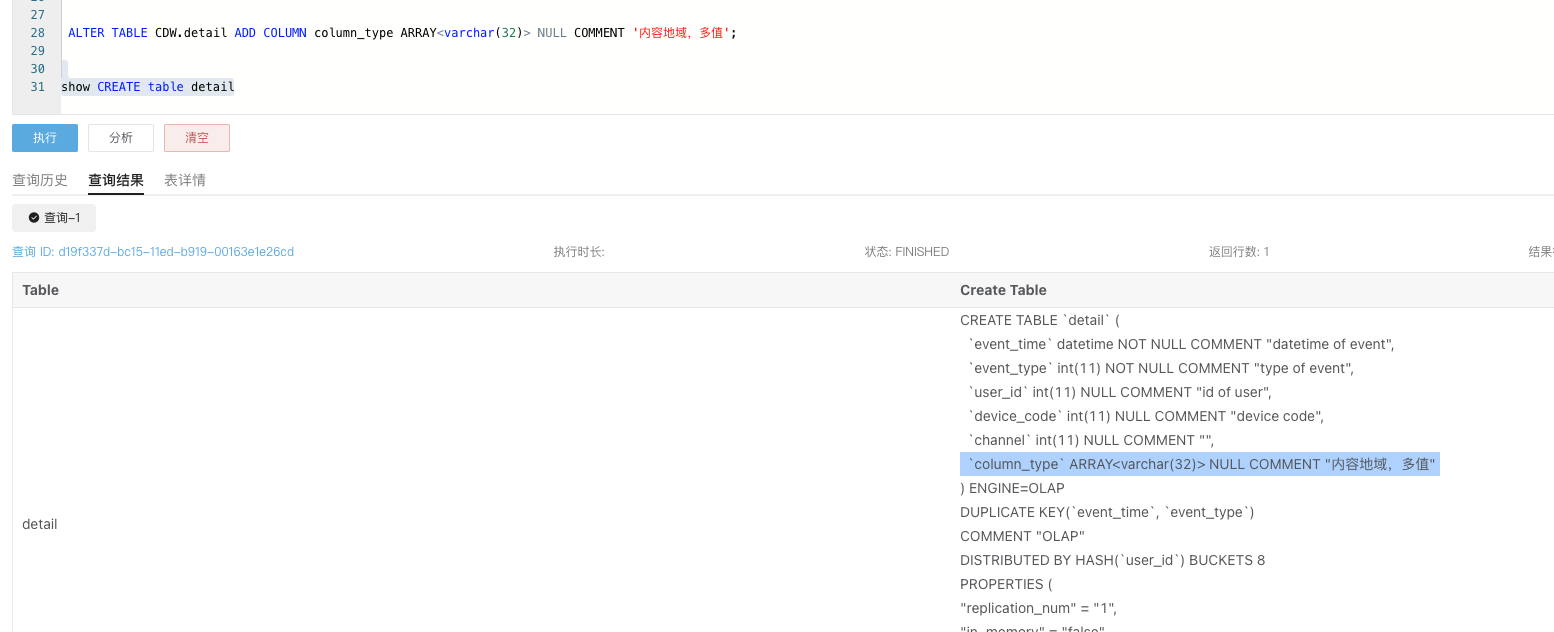 ALTER TABLE interaction ADD COLUMN n_content_areacode ARRAY<varchar(32)> NULL COMMENT ‘内容地域,多值’;