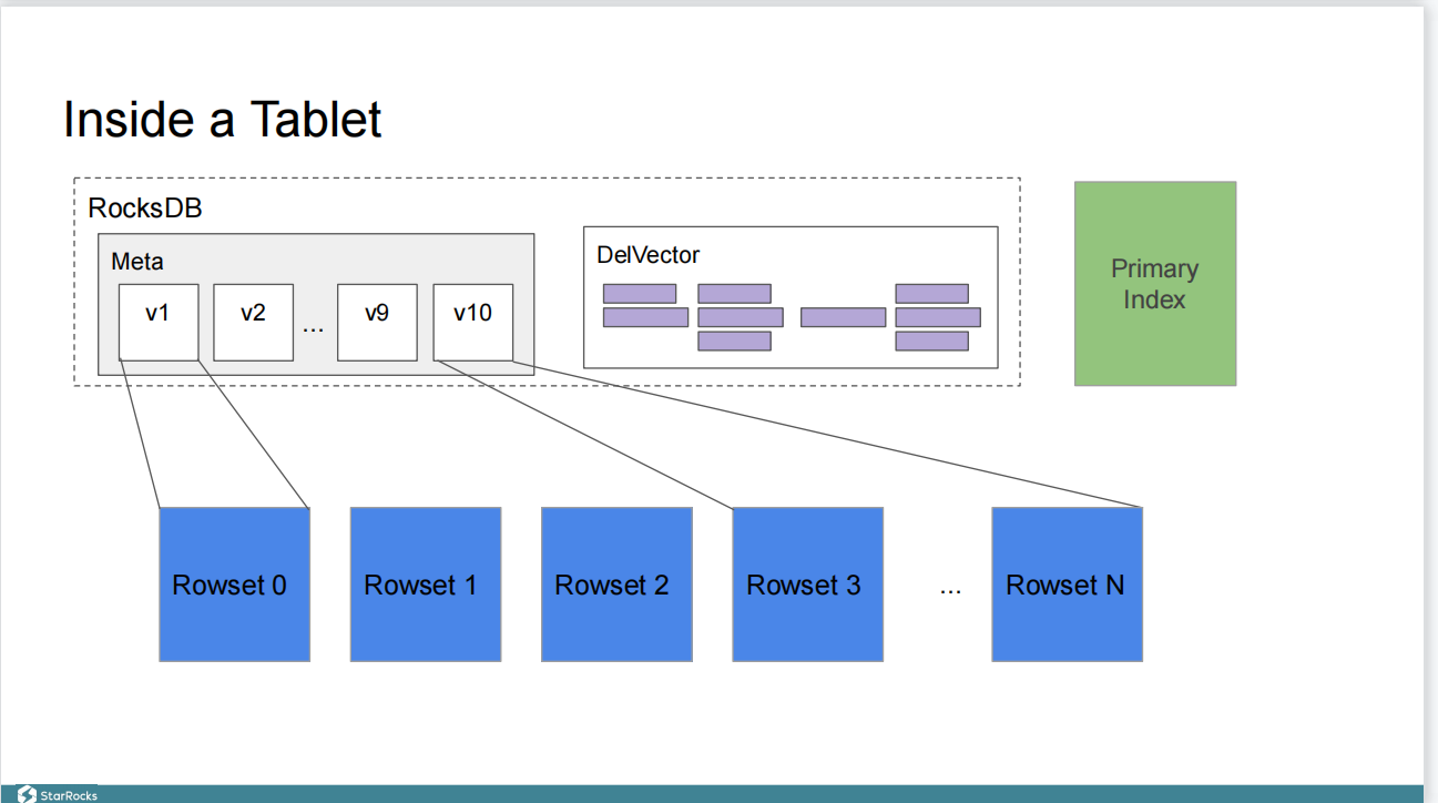 在B站看到starrock实时更新的视频(https://www.bilibili.com/video/BV1NU4y1f7HJ/?spm_id_from=333.999.0.0&vd_source=046a69a2d4bcab6a6b89966cbaf78bd0,关于tablet内部结构,是只有 Primary Index表的tablet内部结构才是这样吧?聚合和更新模型使用merge on read,tablet还有Del Vector部分吗?