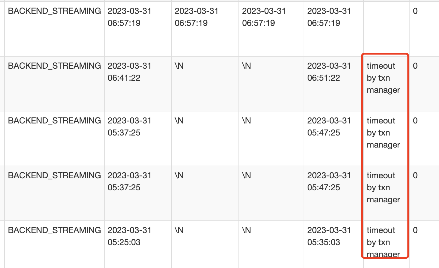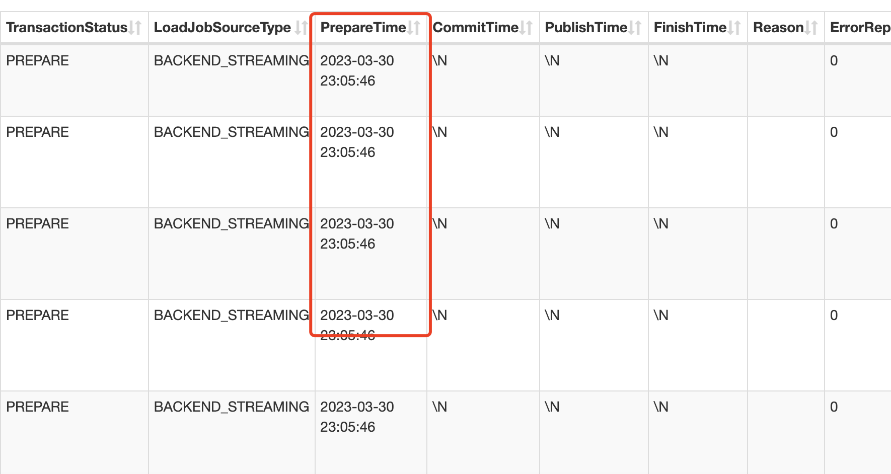 部分更新列,管理页面出现很多PREPARE BACKEND_STREAMING 2023-03-29 16:28:32