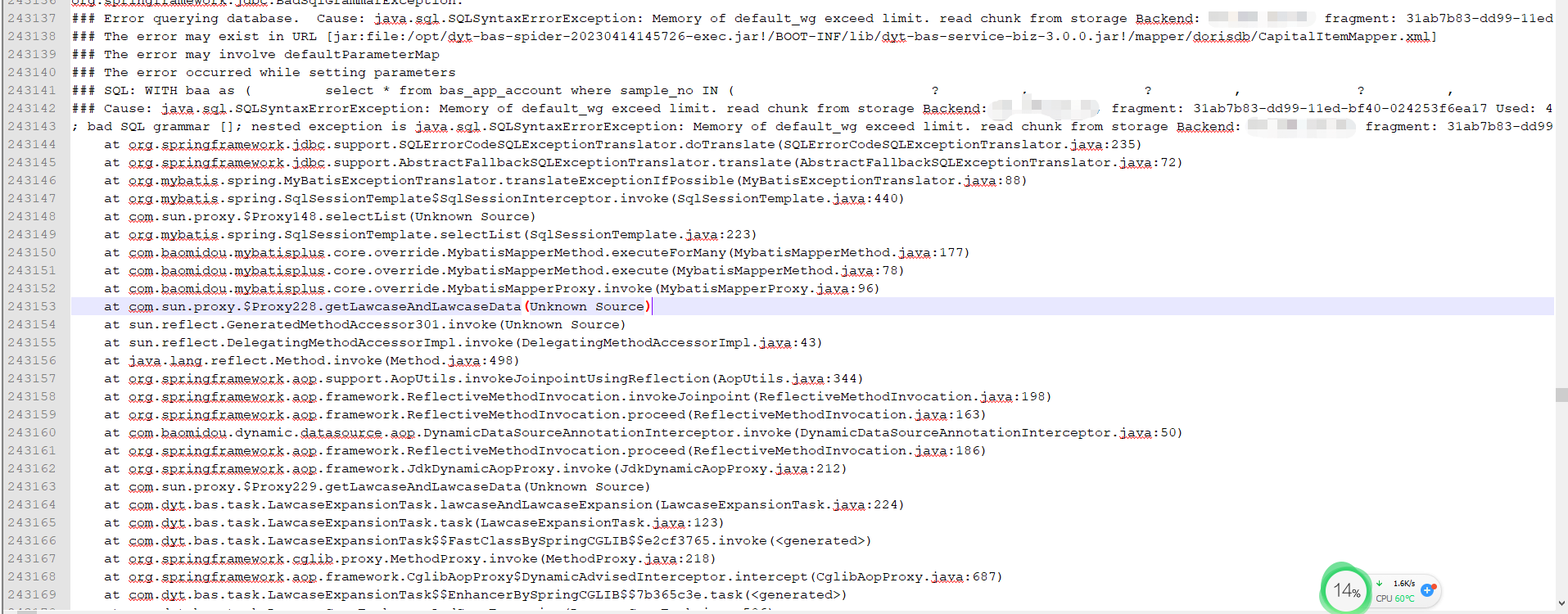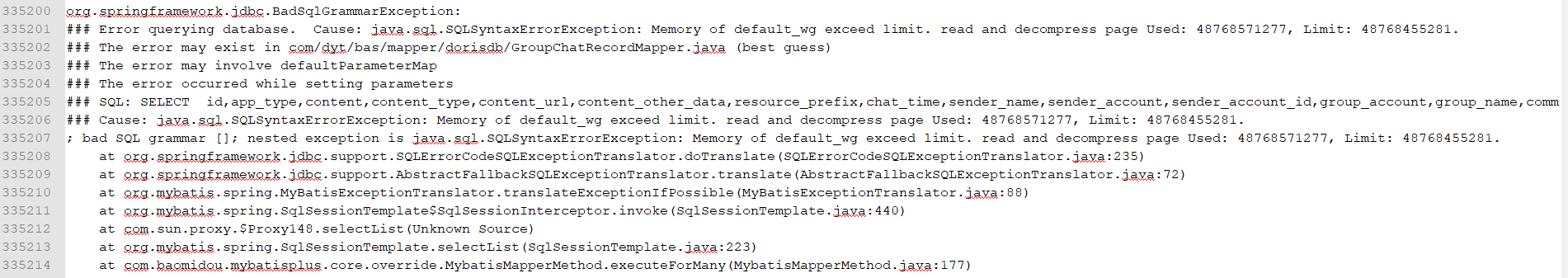 【详述】频繁出现Memory of default_wg exceed limit报错