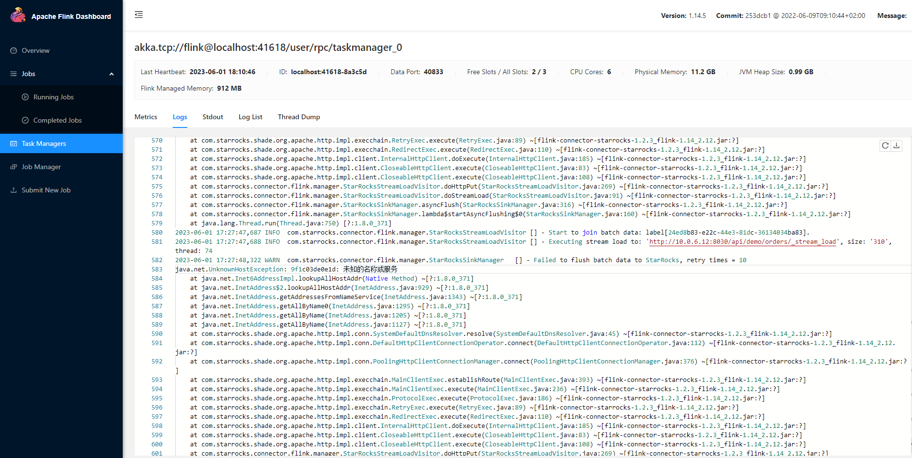 【详述】使用Flink实时同步mysql数据到SR提示“未知的名称或服务”