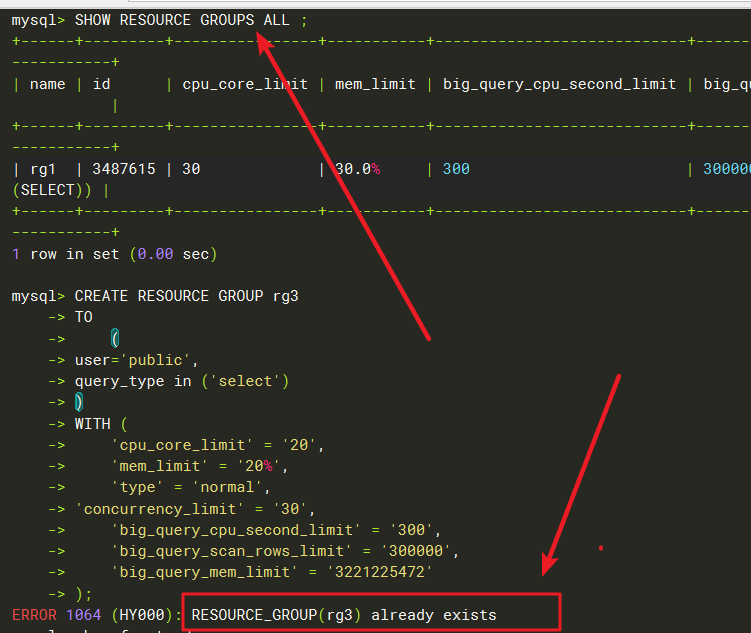 【详述】starrocks删除资源组再创建同名资源组报错已存在,是不能创建前面同名称的吗? 【StarRocks版本】2.4.2 【集群规模】3fe(3 follower)+3be(fe与be混部)