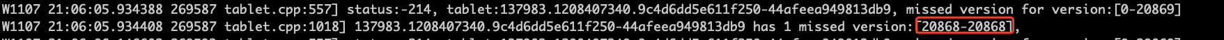 【详述】tail -f be.WARNING一直在刷missed version for version:[0-20830]这类日志