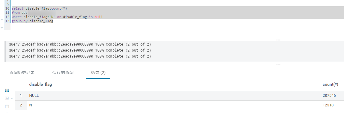 select count(1) from hive_catalog.db.table where 字段 is null or 字段=‘Y’
