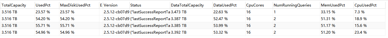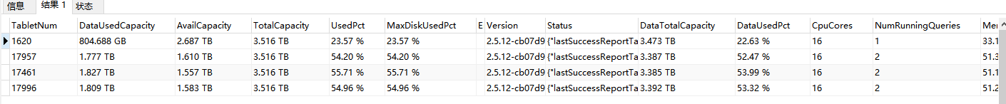 本来4个节点都是一起添加进来的,之后starRocks有出现异常,然后就通过alter system decommission backend “be_host:be_heartbeat_service_port”;先撤掉这个异常节点,后面取消了这个动作,数据量就变成这个样子了