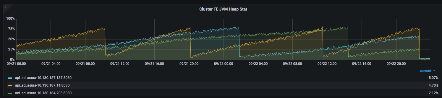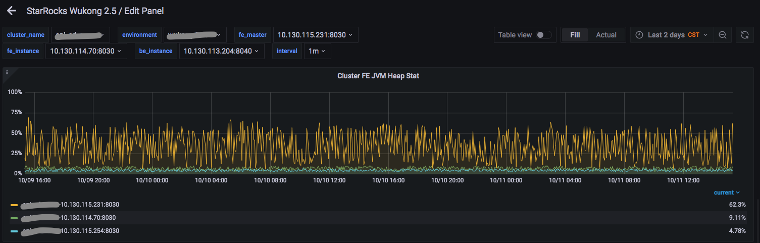 【详述】集群版本升级到2.5.10后,发现FE leader 节点JVM heap内存使用量高,其他follower节点heap内存使用量很低。导致经常引起查询超时。在同一时刻,同样一个查询,通过follower节点,返回耗时不到1s,但是通过leader节点,返回耗时超过20s,这样的现象出现的频率很高。