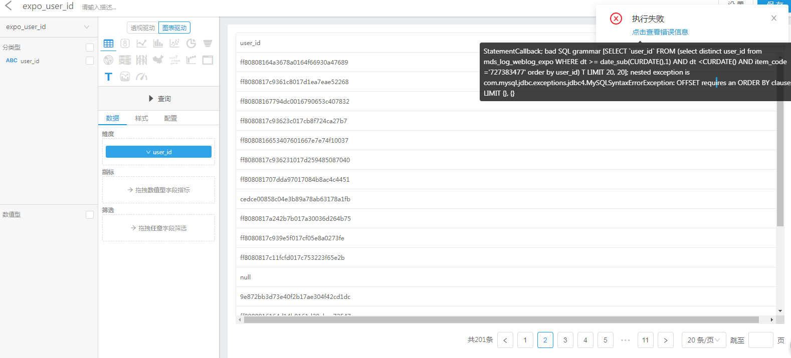 这个分页查询sql是davinci自动生成的,我如果自己查加order by 是可以查的,davinci 自动生成这个不能查